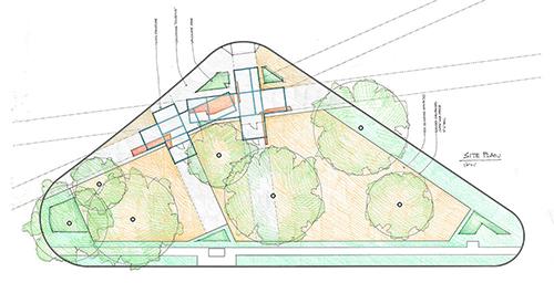 A future phase will include permanent structures, irrigation and additional landscaping. Design by Eric Gonzalez.